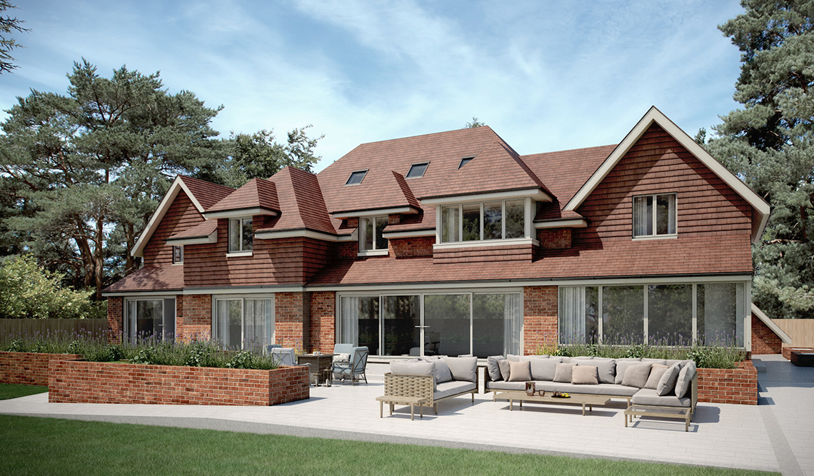 Externally, the rear, front and side extensions have been designed to sit naturally within their setting, while landscaping and level thresholds will promote a seamless connection between indoor living and the surrounding woodland views.
